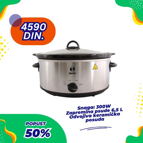 Zaboravite na beskonačno mešanje i nadgledanje hrane na šporetu. Zotrix krčko omogućava vam da sporo kuvate hranu bez opasnosti od zagorevanja, zahvaljujući keramičkom unutrašnjem loncu koji se lako vadi. Takođe, ovo je i ekonomičan izbor jer koristi manje energije u poređenju sa klasičnim rernama, a možete ga čak koristiti i noću uz jeftiniju tarifu električne energije.