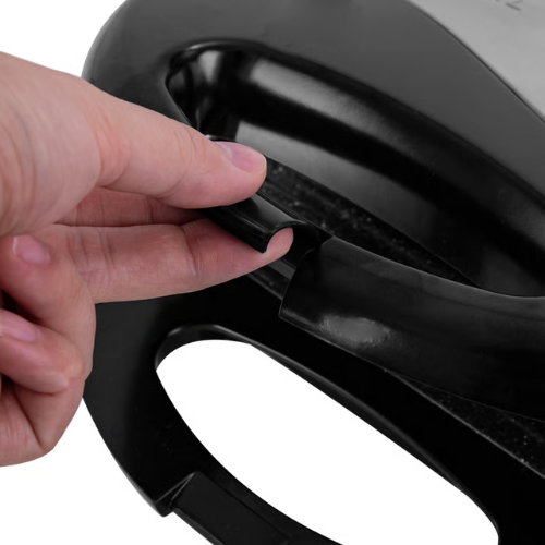 Snaga od 750 W obezbeđuje brzo zagrevanje ploča, dok indikatorska lampica pokazuje kada je aparat spreman za rad. Mehanizam za zaključavanje drži sendviče stabilno tokom pečenja.