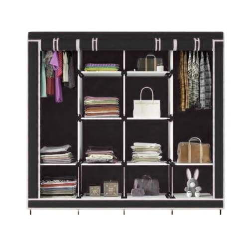 Orman je izrađen od visokokvalitetnog ne-tkanog materijala koji je otporan na vodu i lako se održava. Ovaj materijal je prozračan, što omogućava cirkulaciju vazduha unutar ormara i štiti vašu garderobu od neprijatnih mirisa i vlage. Konstrukcija ormara sastoji se od čeličnih cevi sa zaštitnim slojem koji sprečava rđu, kao i od izdržljivih PP plastičnih konektora. Uz dodatne čelične šipke sa strane i pozadi, stabilnost ormara je značajno povećana, čineći ga otpornim na savijanje i lomljenje. Ovakva konstrukcija garantuje dugotrajnu upotrebu, čak i pri češćem rasklapanju i preseljenju.